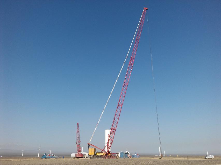 此臺履帶吊服務于戈壁灘一大型風電項目,由于此臺履帶吊噸位大,現(xiàn)場環(huán)境惡劣,所吊裝的設備價值昂貴,現(xiàn)場對安全高度的重視,故該能源建設公司為此臺履帶吊配備我公司TLX55A型履帶吊力矩限制器,來為此項目的安全保駕護航。