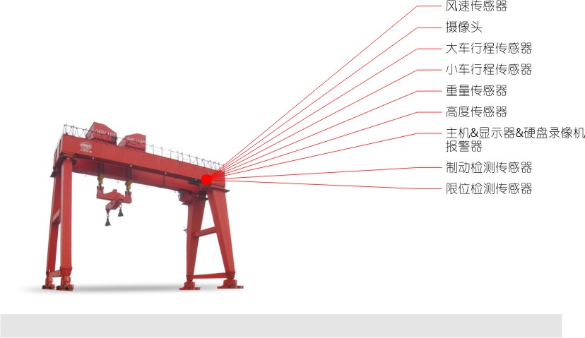 (1)起重機(jī)吊鉤工作區(qū)域等重要部位,均設(shè)置攝像機(jī),做到對(duì)起重機(jī)工作環(huán)境的實(shí)時(shí)監(jiān)視